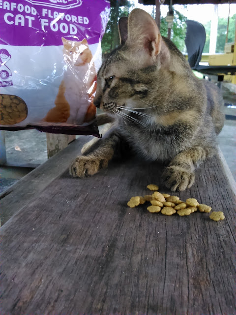 Last Monday, we decided to get ourselves some kitchen stuff at Giant while visiting the adjacent bank. On the way back, we stopped by and fed this fluffy Madam. She was having her nap in that scorching afternoon. When she opened her eyes, we served her some biscuits and she turned almost 6 times around the biscuits.